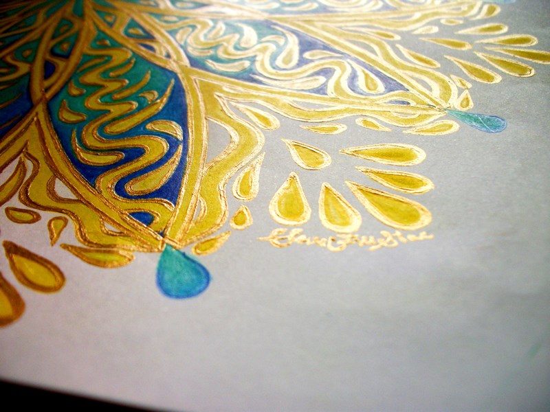 Before I drew this Mandala I was constantly seeing beautiful pictures, videos and images of Peacocks birds and its brilliant colors, everywhere, from the Internet to Television and Magazines. Sometimes inspiration works in mysterious ways. I only realized this when I finished coloring. And that is why I like to discover the symbolic meaning behind colors or particular shapes.